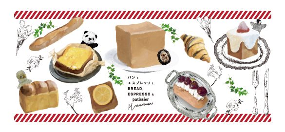 その魅力を中心に、パンと一緒に幸せそうな動物たちを描きました。